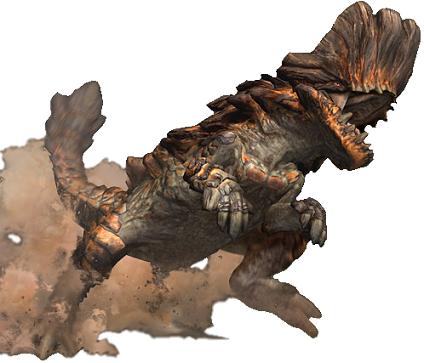 背中側の表皮が岩のように発達しており、特に武器にもなる頭部は打撃属性の武器でしか破壊する事ができないほど強固である。
